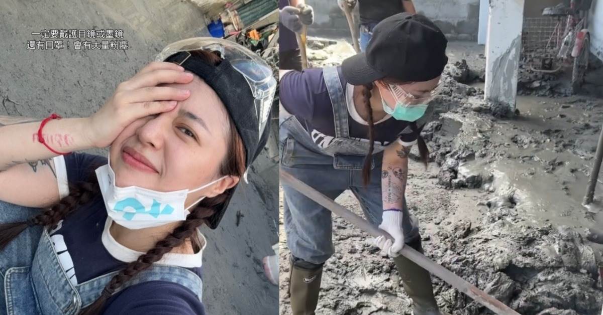 女星林吟蔚來到光復鄉,協助當地清理淤泥。(圖/翻攝自林吟蔚IG)