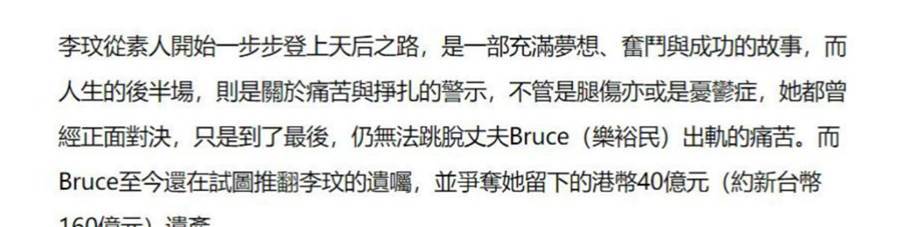 如果樂裕民得逞,那麼李玟的母親只能得到其中四分之一的遺產,樂裕民和他的女兒們則能得到四分之三。