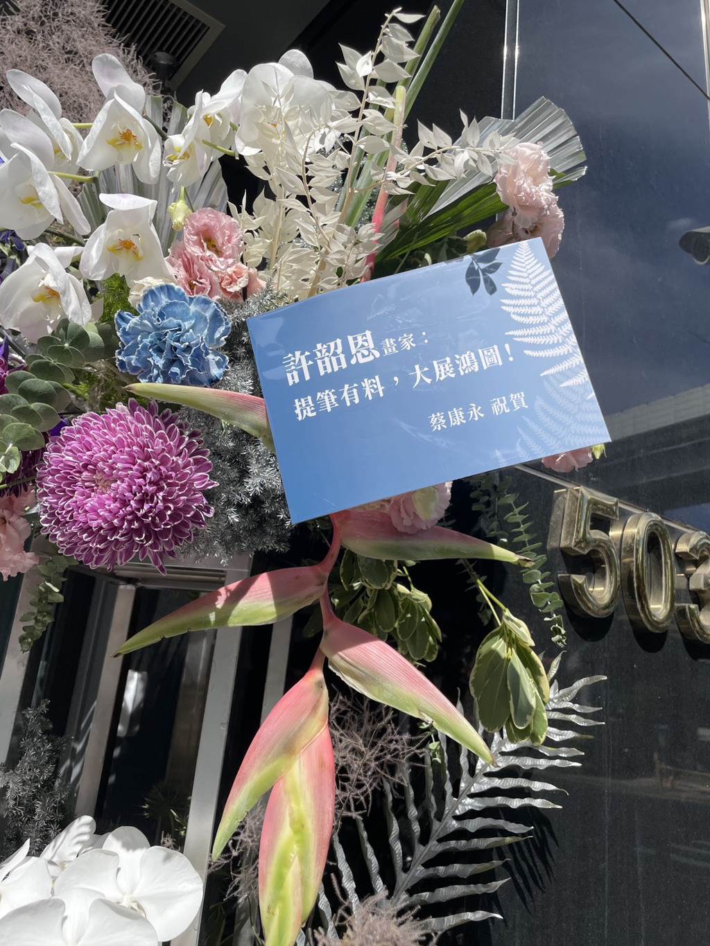 吳宗憲低調用Jacky Wu名義送花。(謝采恩攝)