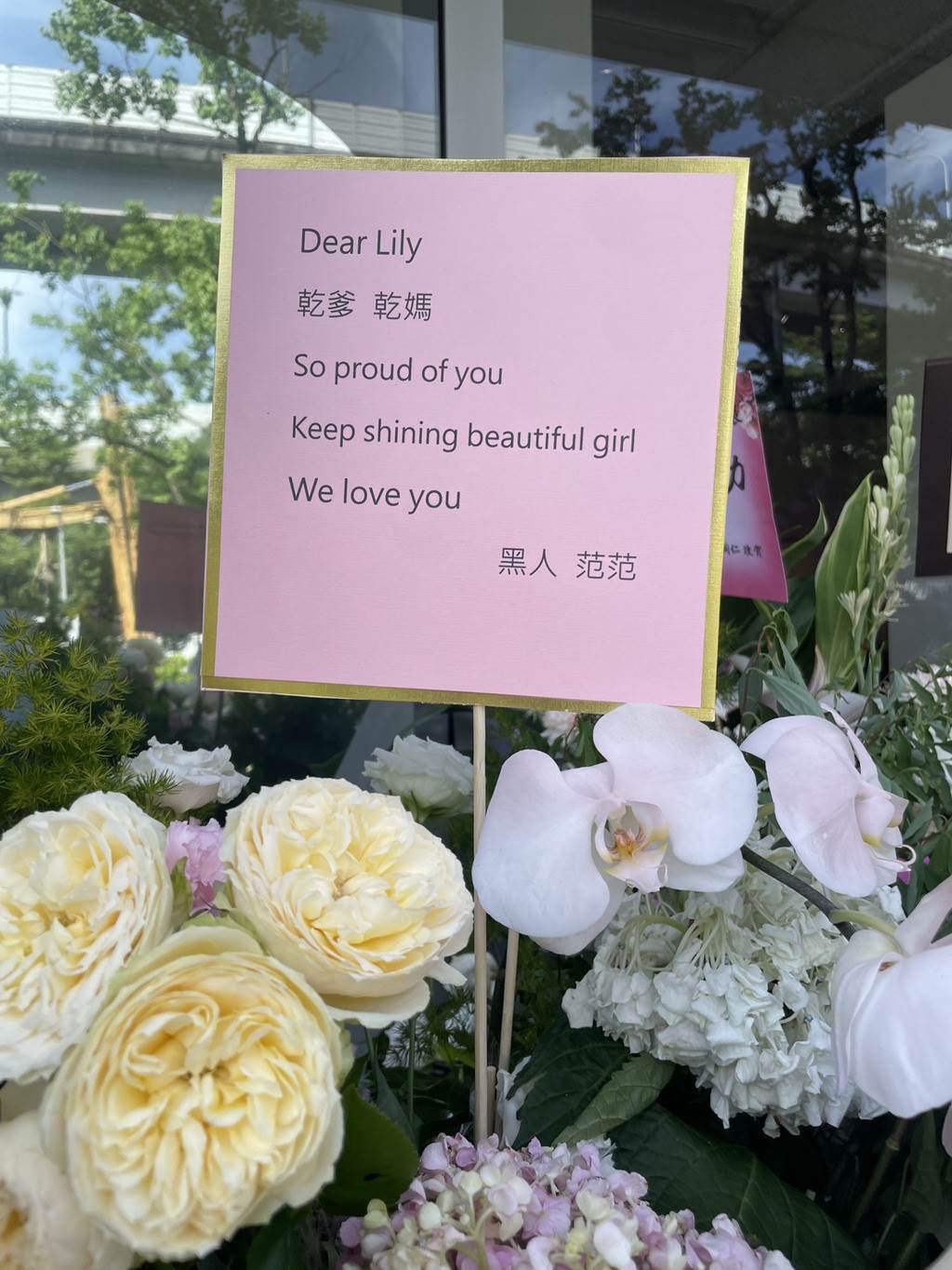 陳建州、范瑋琪還特別題字「乾爹、乾媽 So proud of you」字眼,對乾女兒的表現感到驕傲。