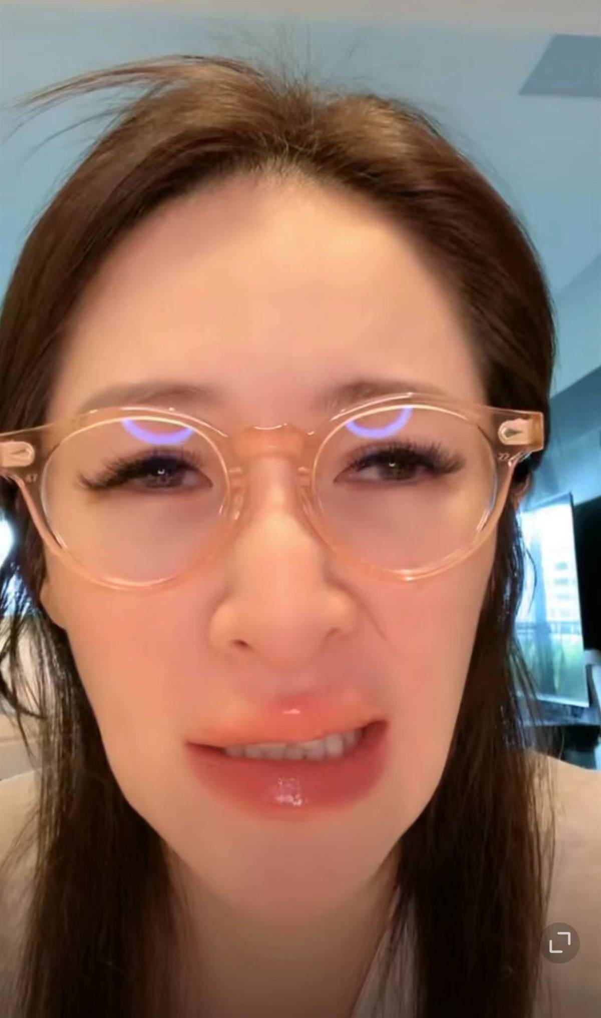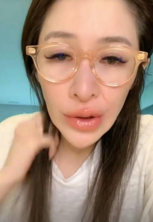 她在社群開設直播,分享自己的近況,卻讓網友們相當驚訝。她在影片中身穿白T、戴上眼鏡,雖然看得出有化妝,但長髮凌亂無比,且雙頰凹陷的狀態,都因過瘦而看起來沒有精神,下巴也呈現削尖的恐怖樣貌。雖然她致力于直播,但眼睛一直是下垂、疲憊貌,幾乎快要張不開,雙唇也不知為何腫脹不堪,宛若香腸嘴,各種異樣狀態都讓網友議論紛紛。