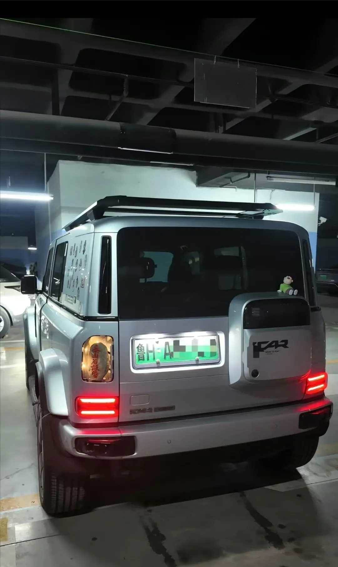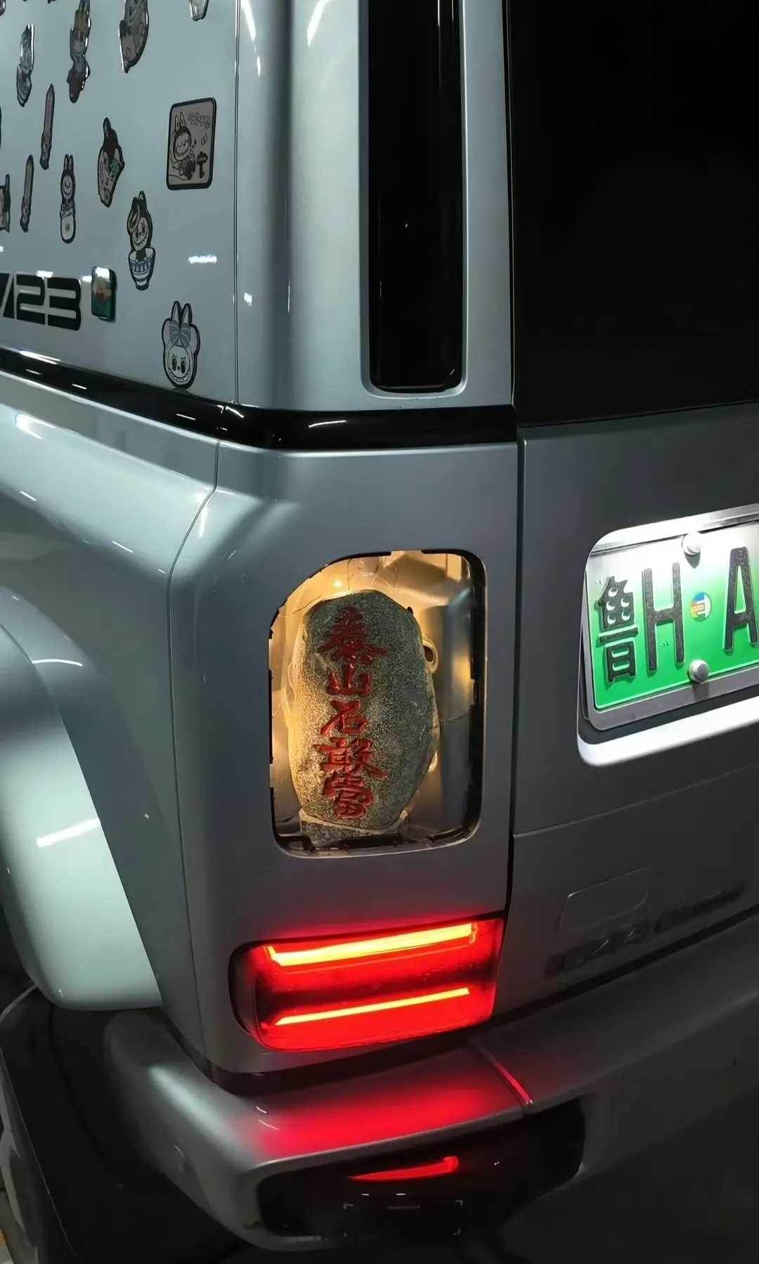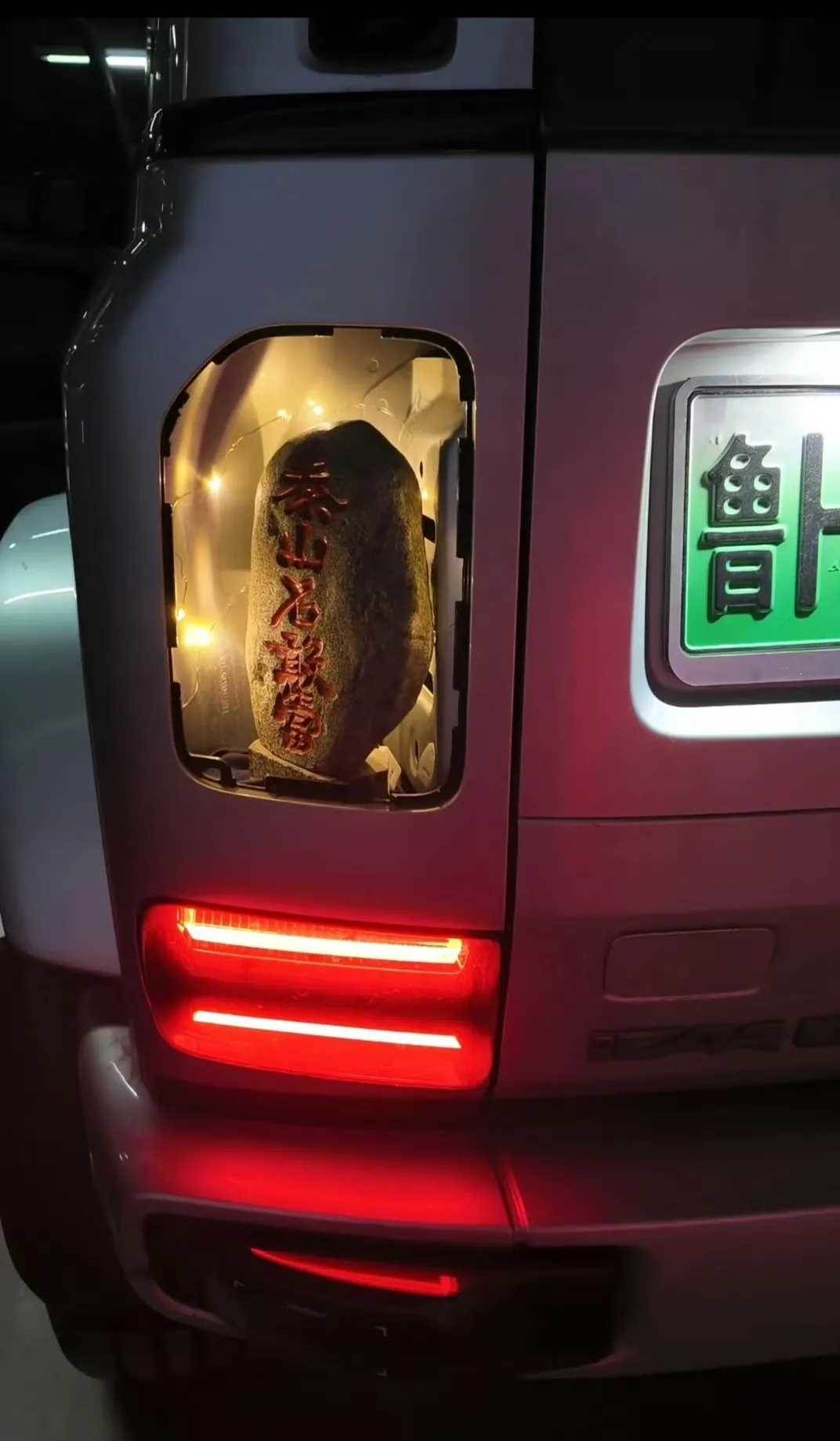 這塊石頭被巧妙地安置在車輛的尾燈之間,上面刻著一些字跡,雖然在行駛中可能難以辨認,但這種裝飾無疑為車輛增添了一份獨特的個性。司機在分享時直言「好新奇」,顯然對這種不常見的裝飾感到好奇和興趣。