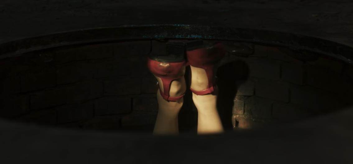 冉曦打著手電筒繼續找,卻看見下水道井底的一具倒立女屍。
