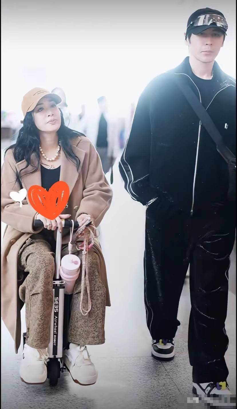最近鍾麗緹和張倫碩走機場的照片直接衝上熱搜,只見鐘麗緹穿著駝色大衣配豹紋褲,整個人騎在電動行李箱上滑行,看著確實圓潤了不少。