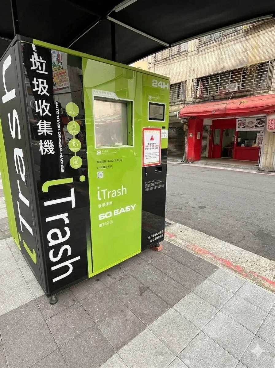 相信住在台灣的大家都有過民追著垃圾車的經驗,一旦錯過時間,就又得把垃圾乖乖拎回家等隔天。不過近日有網友到臺北洽公時,意外在路邊瞥見一臺綠黑相間的大型機器,起初還以為是飲料販賣機,走近細看才驚覺上頭標示著「垃圾收集機」字樣,標榜全天候開放使用且無需購買專用垃圾袋,讓她相當好奇這項設施是否真有民眾使用。