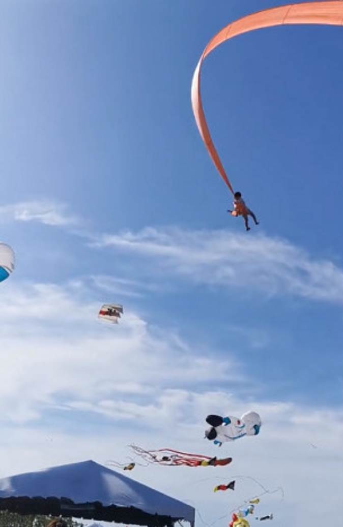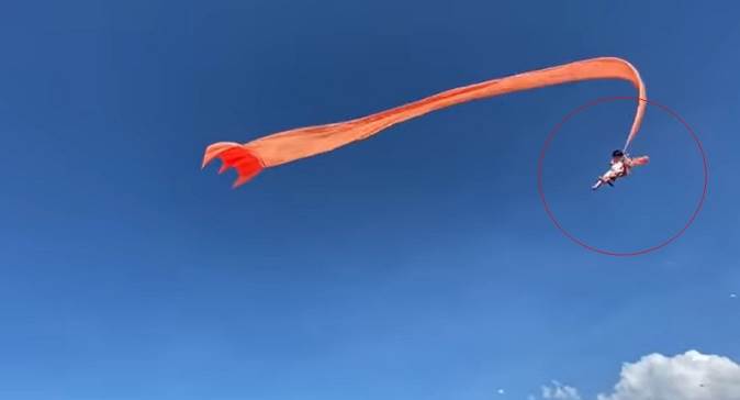 所幸在現場工作人員與家長冷靜應對、把握風勢轉弱時機,合力將女童拉回地面,僅留下頸部勒痕,並無生命危險。據悉,施放糖果風箏時,突遇七級強風,風向紊亂,尾巴細長的「領航風箏」意外纏上女童腹部,將其捲離地面。
