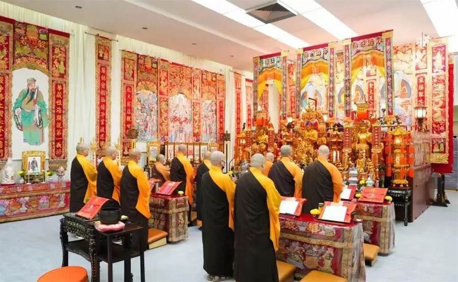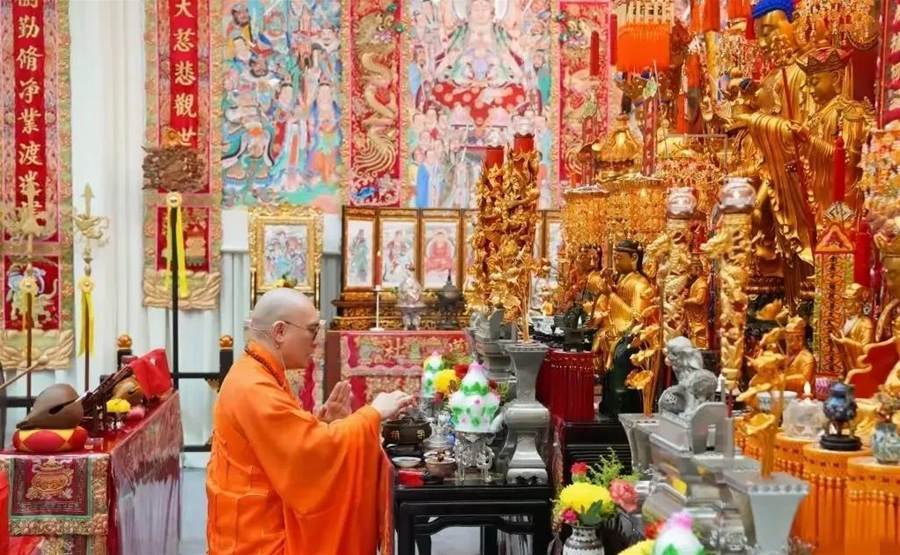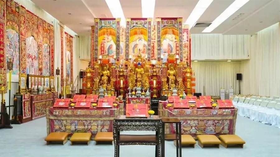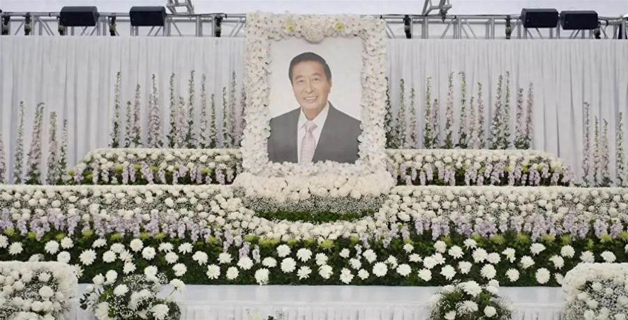從媒體分享的現場畫面我們可以看到,葬禮的儀式全部采用佛教形式。靈堂正中間擺放著金碧輝煌的佛壇。