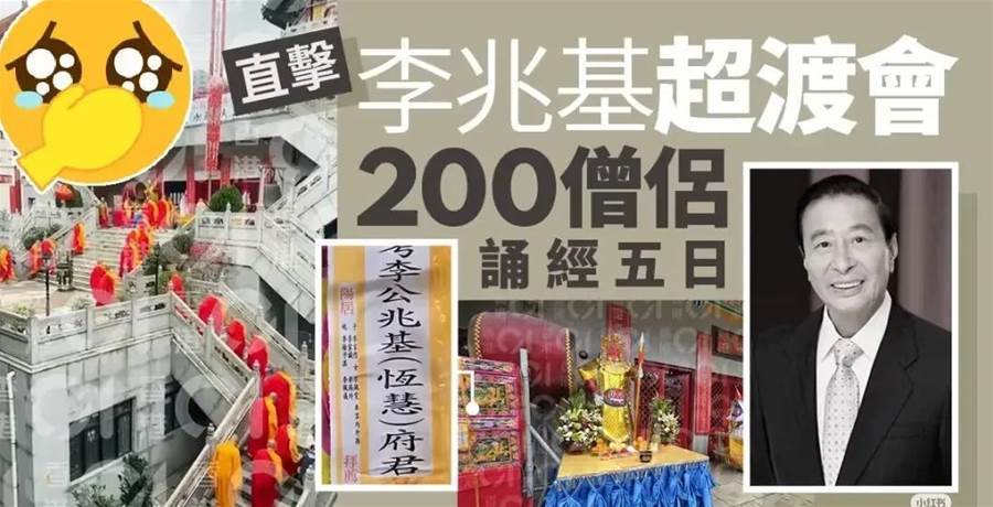 整場葬禮全部委托華嚴蓮社主理,李家誠和李家杰兩兄弟非常孝順,連日在連日為亡父在寺廟設置「附薦紙位」,并且安排大批高僧每日誦經超度,大殿堂外擺放兩大箱祭品及一艘超過5米長的「慈航普度法船」。