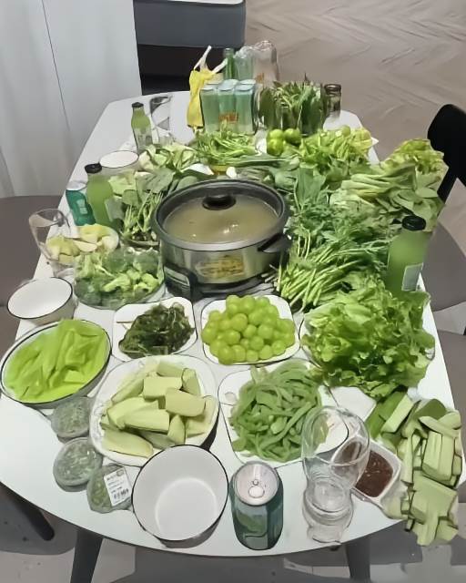 近日,一位網友在社交平臺曬出了自家的火鍋局照片,瞬間引發了全網熱議。照片裡,一張大圓桌被各種綠色蔬菜擠得滿滿當當,中間的火鍋清湯寡水,周圍環繞的全是生菜、油麥菜、空心菜、芹菜、青提、絲瓜、苦瓜等,幾乎看不到一點葷腥。配文更是扎心:「我媽說最近要‘刮刮油’,今天這頓火鍋,主打一個全素,連個丸子都不讓買。」