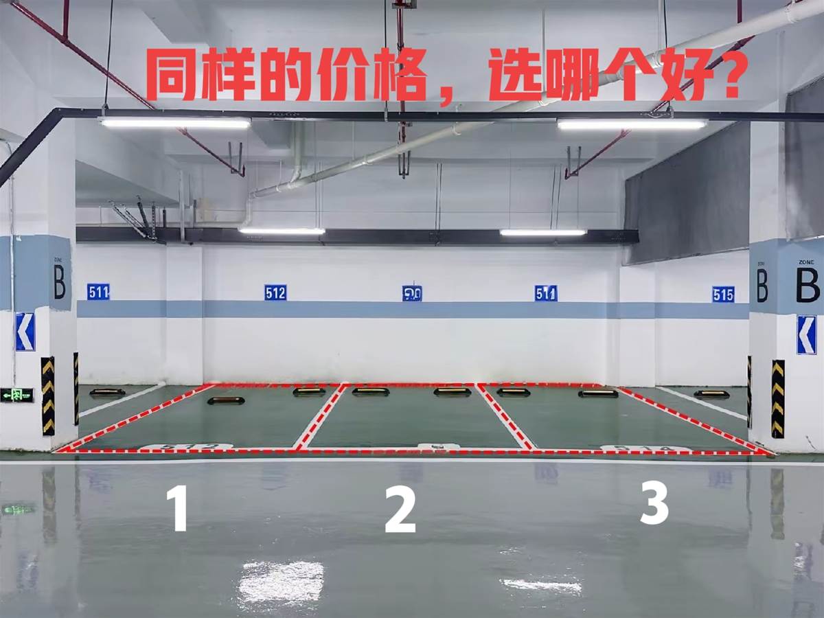 首先,從使用便利性看,3號車位緊靠停車場主通道,進出更為順暢。雖然2號車位看似居中平衡,但實際使用中,左右兩側都有車輛相鄰,開車門時需格外小心,尤其對有老人小孩的家庭,上下車空間略顯侷促。