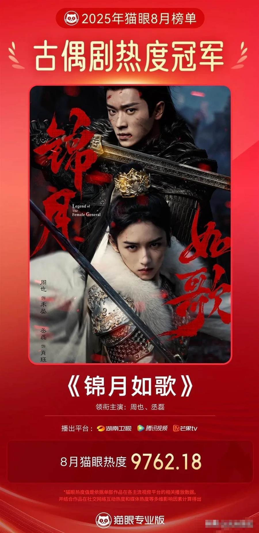 《錦月如歌》騰訊視訊站內熱度就突破27000,登頂貓眼多個熱度榜單,熱播期有效播放量超過9.