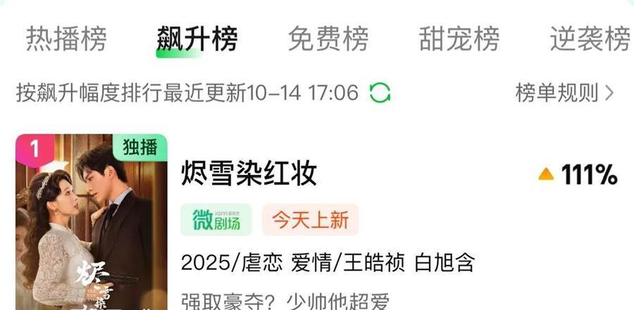 劇集一經上線,以111%的數據直接登頂了愛奇藝飆升榜第一