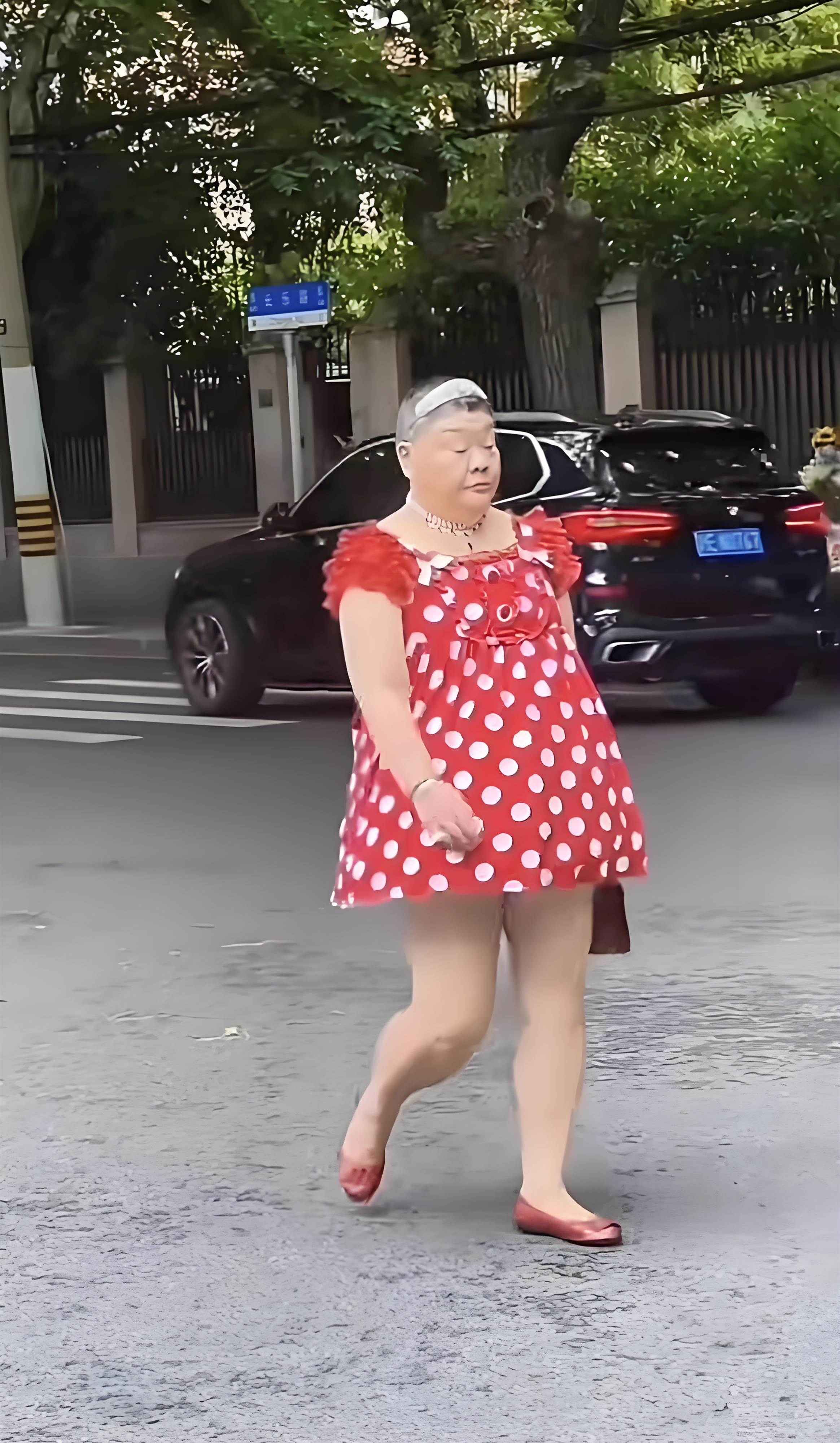 周日下午的街頭,一位特別的阿嬤成了整條街的焦點。她留著利落的銀白寸頭,戴著櫻桃紅髮箍,身穿蓬松的紅色波點泡泡裙,腳踩同色系涼鞋。"這年紀還穿成這樣...""是不是這里有問題?"路人的竊竊私語像蚊子般嗡嗡作響,有個少年甚至舉起手機[偷.拍]。
