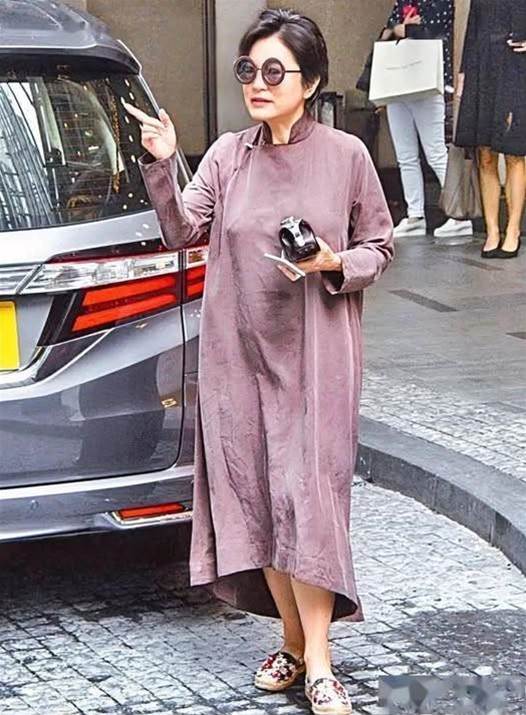 走在人群中的林青霞,身著一條淡紫色的長裙,裙擺隨風輕揚,腳踩圖案平底鞋,整個人看起來既舒適又時尚。那一頭短短的卷髮和圓形的太陽鏡讓她的造型看起來有些俏皮,但更多的是一種成熟的魅力和不拘一格的自在。她手里拿著手機和相機,神態自若,仿佛一個普通的街頭散步者。然而就是這樣自然、不做作的她,反而比起那些拼命裝嫩的明星更加引人注目。
