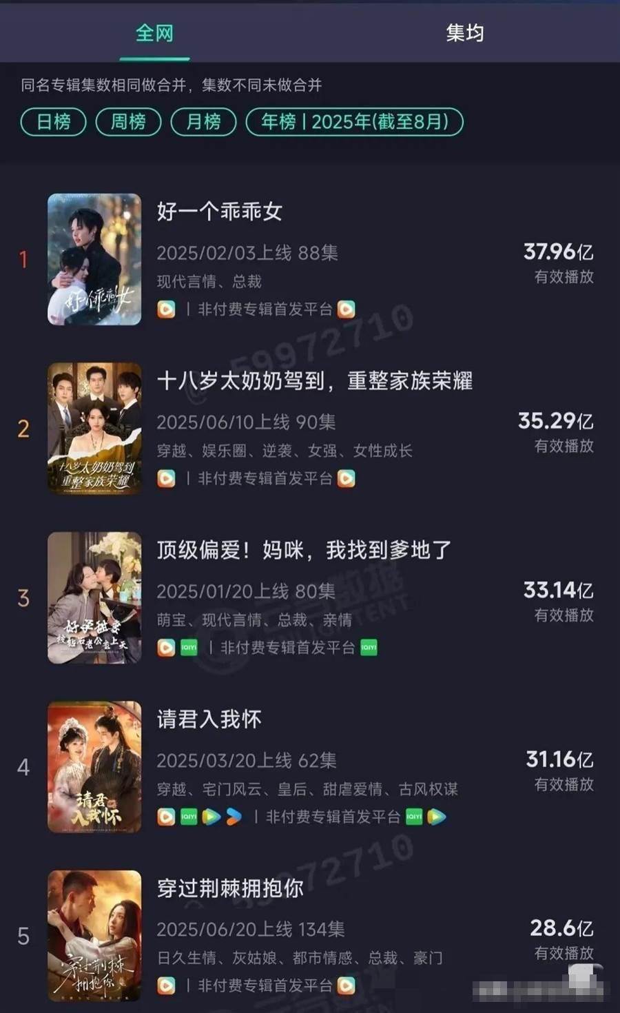 從霸榜冠軍到「半壁江山」的聽花島,2025短劇圈的爆款邏輯,全在這張榜單里了!你看過幾部呢?