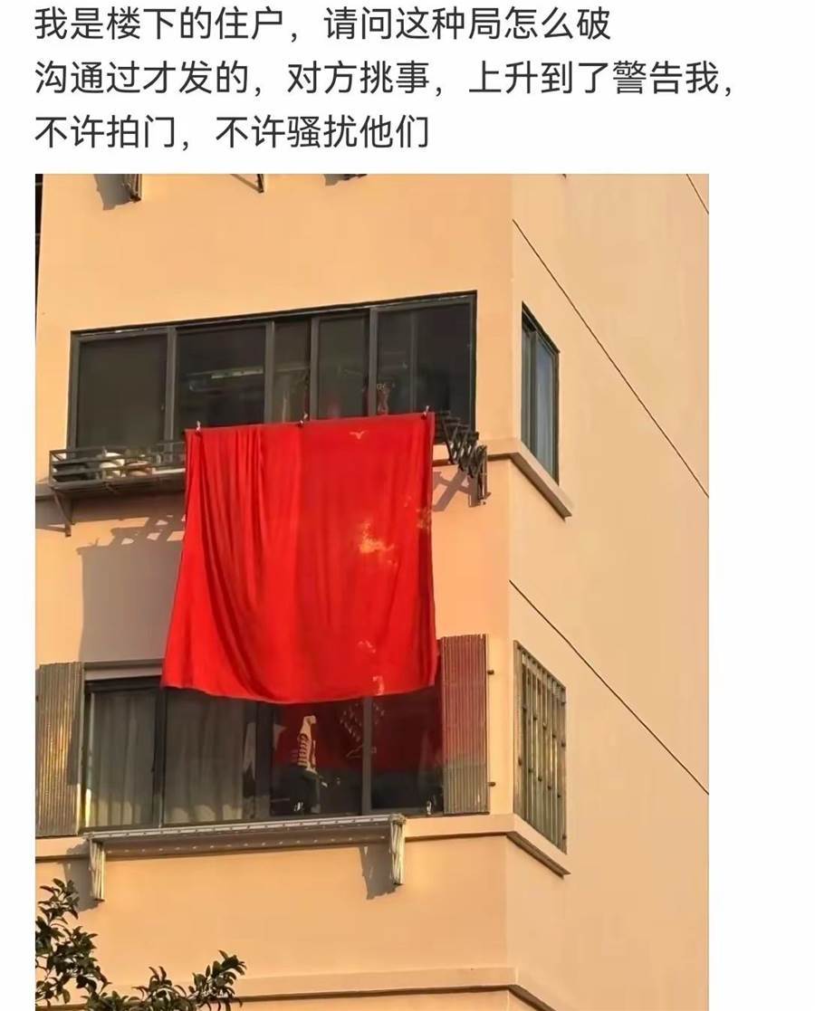 推開陽臺門,那塊鮮豔的紅色大床單又掛在那裡,像一面沉默的旗幟,遮住了我大半窗戶的陽光。樓上鄰居似乎把它當成了常規的晾曬點,渾然不覺它垂落的陰影,正籠罩著樓下我們的生活。