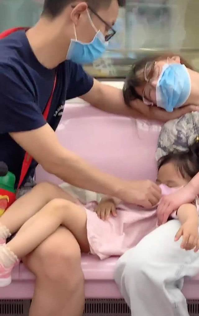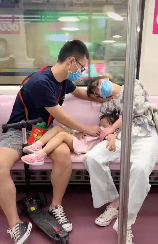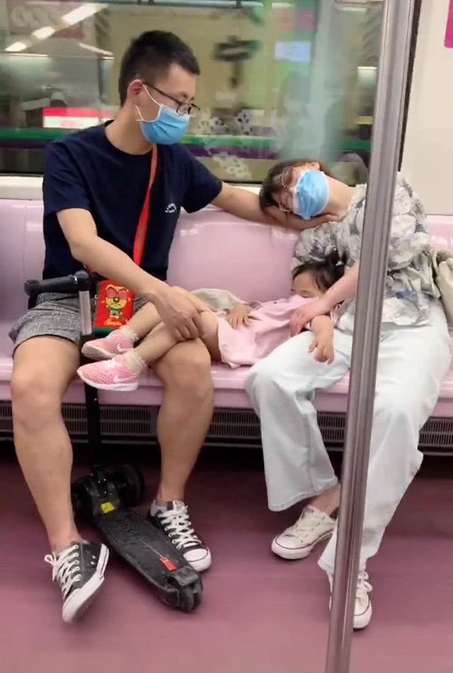 最近網上流傳著這樣一組[偷.拍]照,一家三口乘坐捷運,很顯然是玩耍歸家的一家三口,坐上捷運之後沒多久,女兒就躺在媽媽的腿上睡著了。而媽媽也漸漸被睡意感染、昏昏沉沉地進入夢鄉。