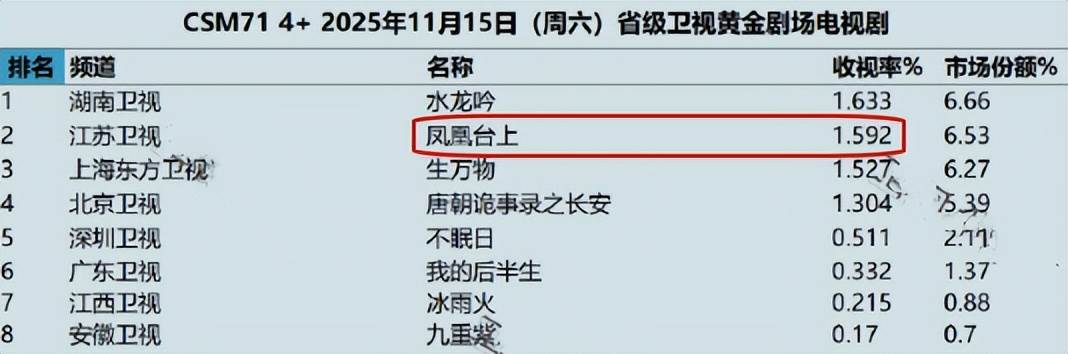 古裝大劇《鳳凰台上》,上星江蘇衛視播出后,收視率破1.5,熱度榮登褲平台榜單第一,觀眾的追劇熱情相當高漲。