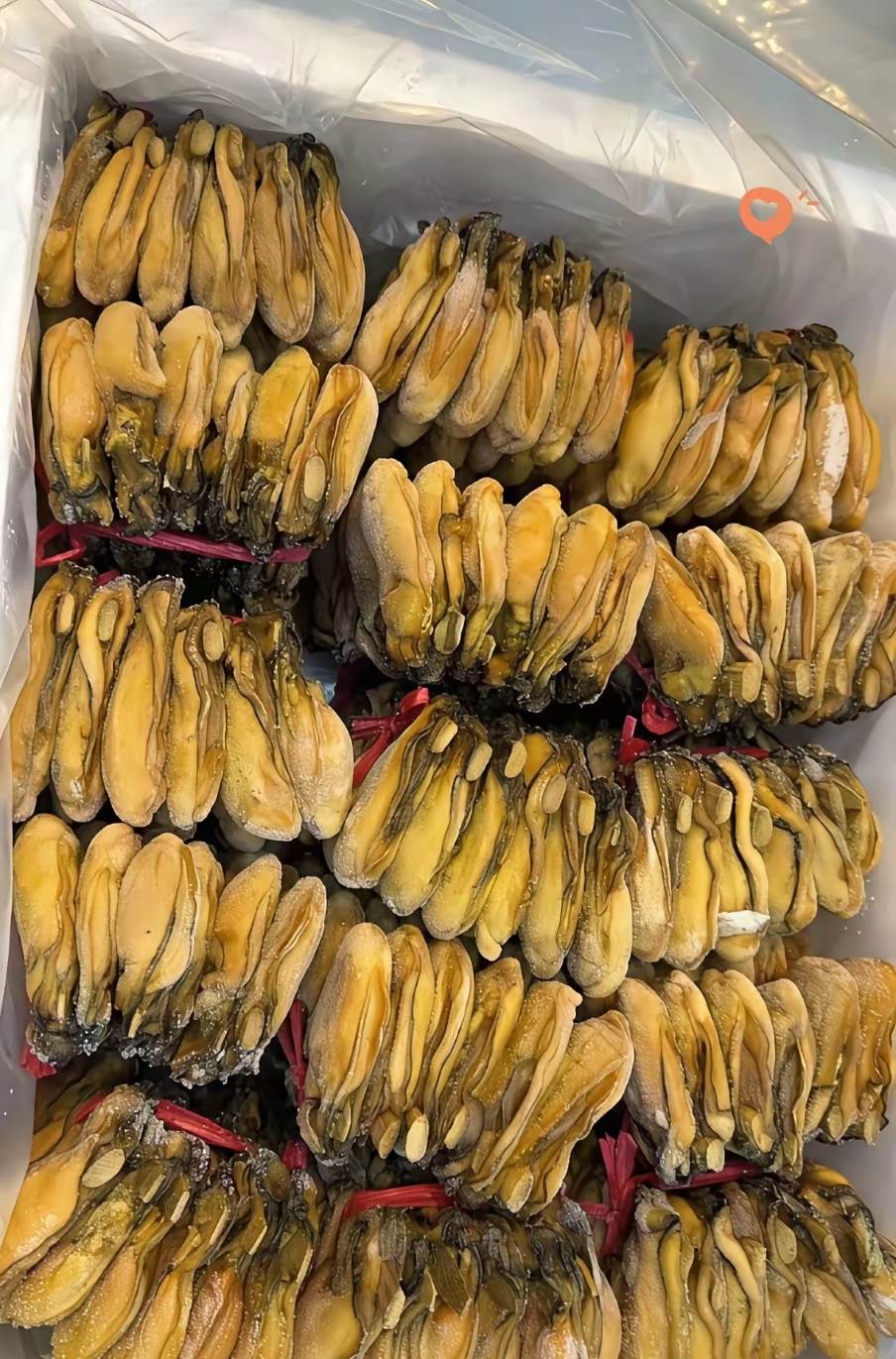 這些「金疙瘩」色澤金黃,肉厚飽滿,每一枚都用紅繩串起,看起來像極了某種珍貴的乾貨,卻又和我們常見的海味不太一樣。直到後來特意拍了照片問朋友,才恍然大悟 —— 這根本不是什麼神秘物件,而是來自廣東台山的生曬金蠔幹,也就是港澳老饕們口中的「海中牛奶」。