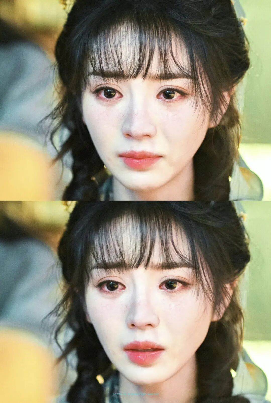 情緒一股腦湧上心頭,她眼眶慢慢紅了,一邊輕聲啜泣,一邊淚水滑落。她嘴角微微抿著,又倔強地不讓自己出聲。