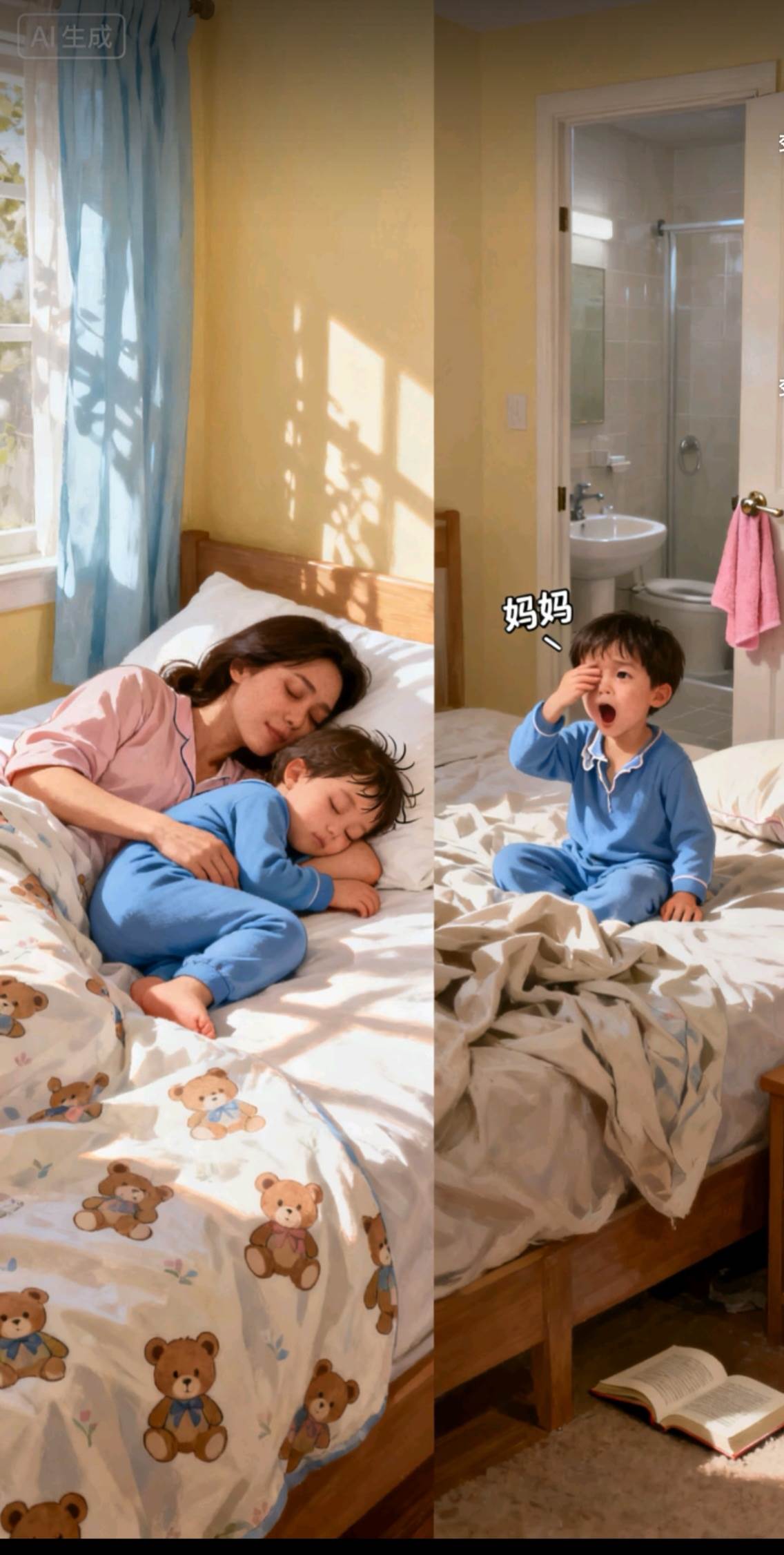 在周末的早晨,有時媽媽會賴床,這時二寶往往能一直睡到上午10點。然而,在工作日,只要媽媽一起床,哪怕只是去衛生間刷牙,還沒刷完,寶寶就開始不停地叫「媽媽」,明顯還沒睡醒,眼睛都硬撐著,想要媽媽一起睡。這種變化讓媽媽感到非常奇怪,仿佛寶寶前一分鐘還在深度睡眠,后一分鐘就能清楚地知道或者感受到媽媽不在身邊。