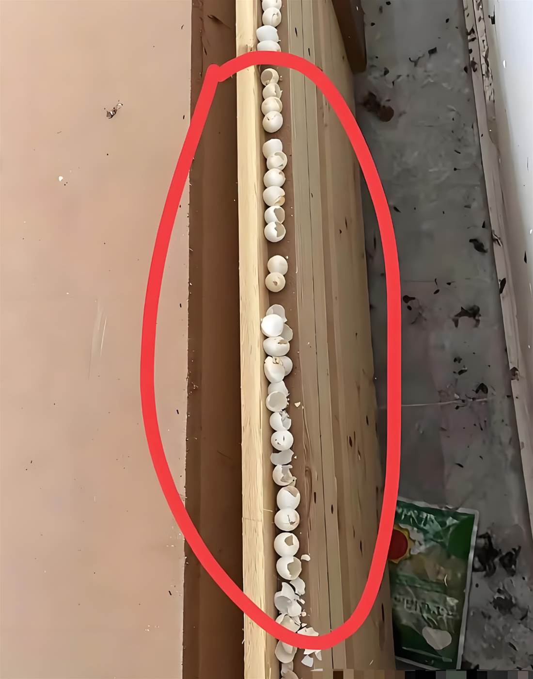 周末大掃除時,我決定徹底清理臥室衛生。當費力地挪開沉重的雙人床,眼前的景象讓我瞬間倒吸一口涼氣——床板與墻壁的夾縫里,密密麻麻散落著數十個破碎的白色殼狀物。這些橢圓形的空殼質地脆弱,大小如同指甲蓋,像極了迷你版的禽類蛋殼,在昏暗的光線下泛著珍珠般的光澤。更令人不安的是,每個殼體的頂端都有一個整齊的破口,邊緣還殘留著些許干涸的黏液,顯然里面的生物已經破殼而出。