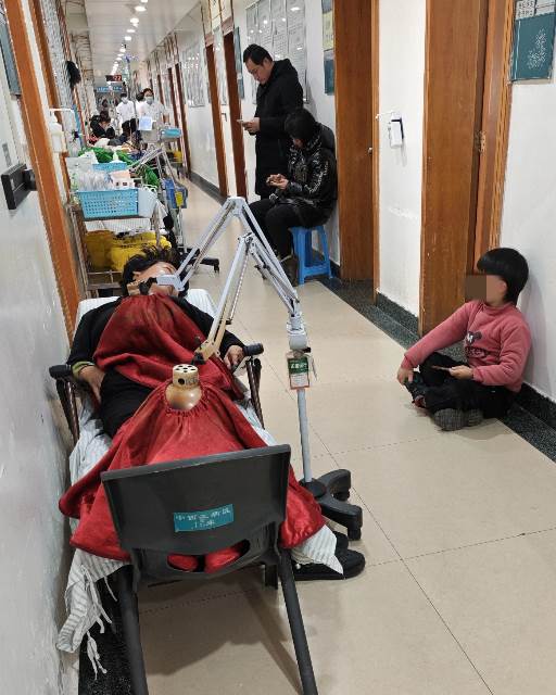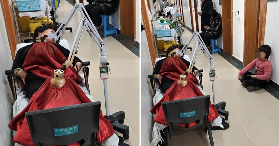 診室外,兒子聽到訊息,嚇得癱坐在地大哭。