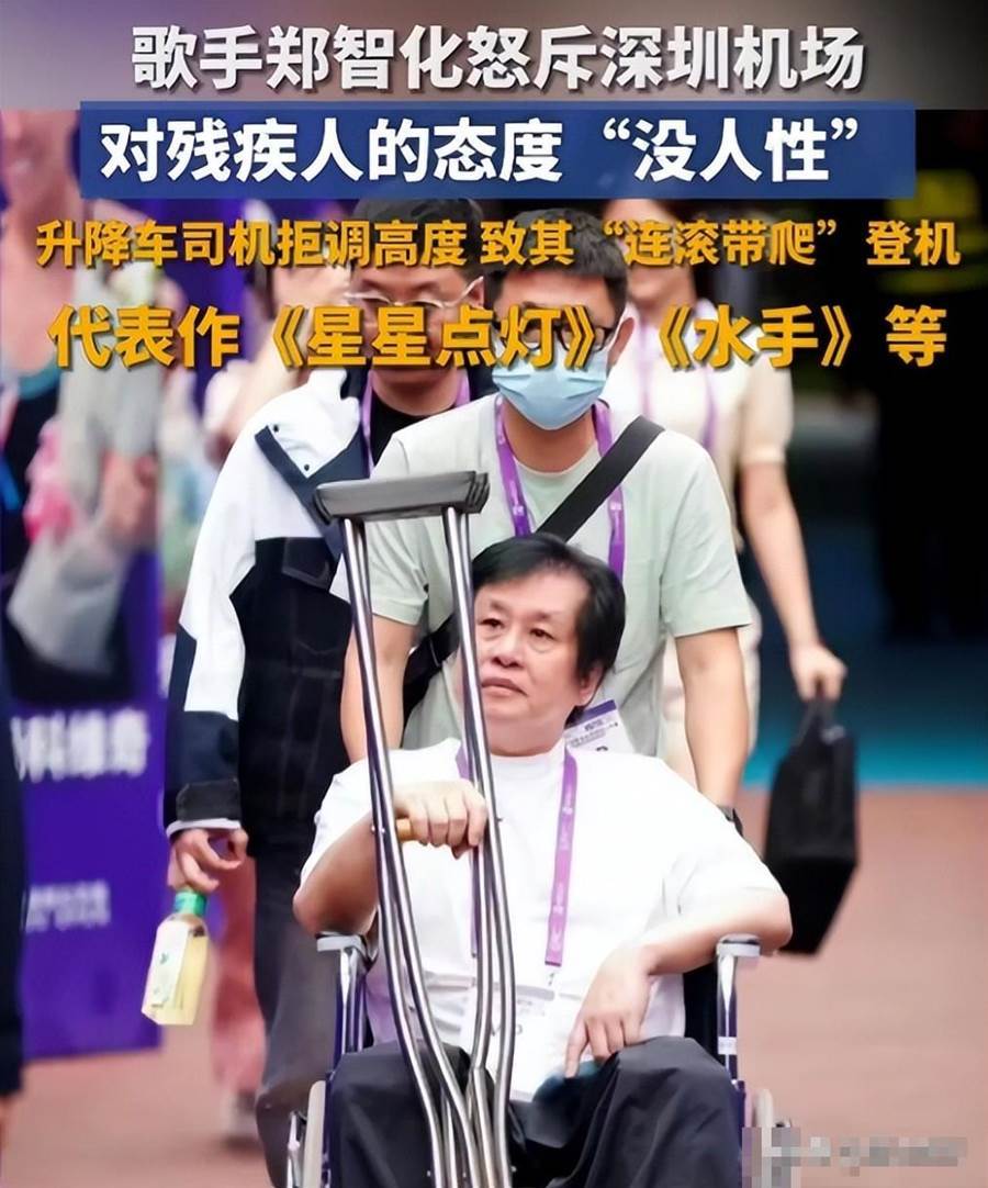 鄭智化坐輪椅在深圳機場登機,升降車離機艙門差25公分,輪椅推不上去。