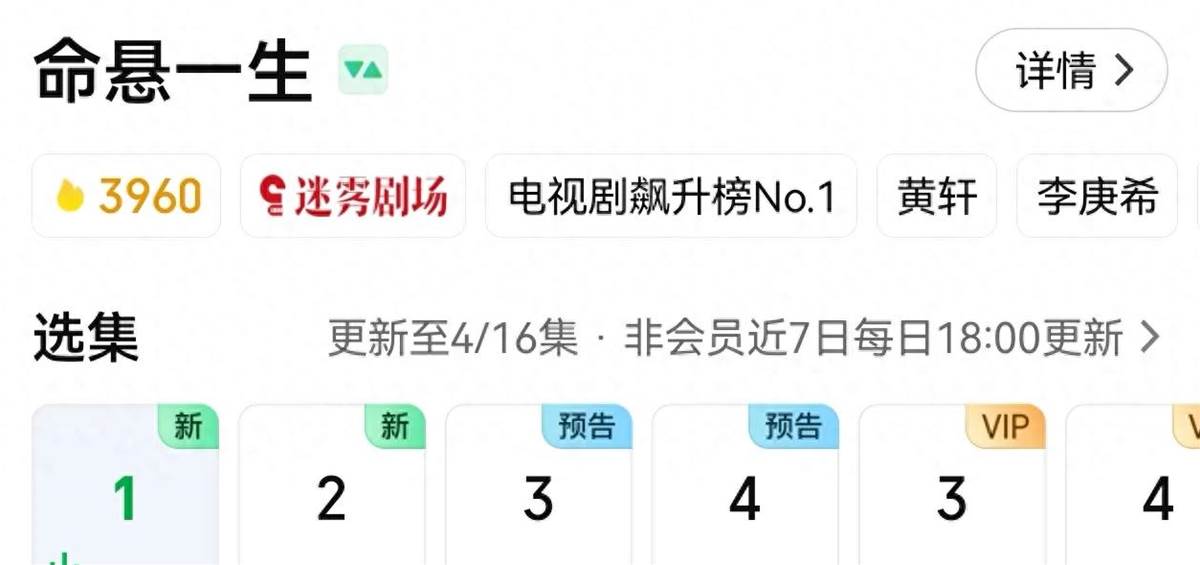 《命懸一生》今日IQIYI開播,是由黃軒、李庚希、張哲華、白宇帆主演,劇情開頭壓迫感十足,三位的演技也是非常好,剛開播熱度直接破3900,全網也是沒有差評。