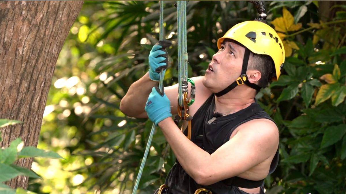 一開始,餘祥銓還覺得很輕鬆,不過就是爬爬樹而已。沒想到實際體驗後才發現,攀樹師的工作難度遠超過他的想象,光是要將繩索精準拋上樹枝,就讓他屢屢失敗,更別說還要爬上至少10公尺的高度。正式挑戰前,他向寶貝女兒小元寶留下告白:「如果妳以後看不到爸爸,不用擔心,爸爸已經幫妳存錢了,千萬不要來爬樹。」