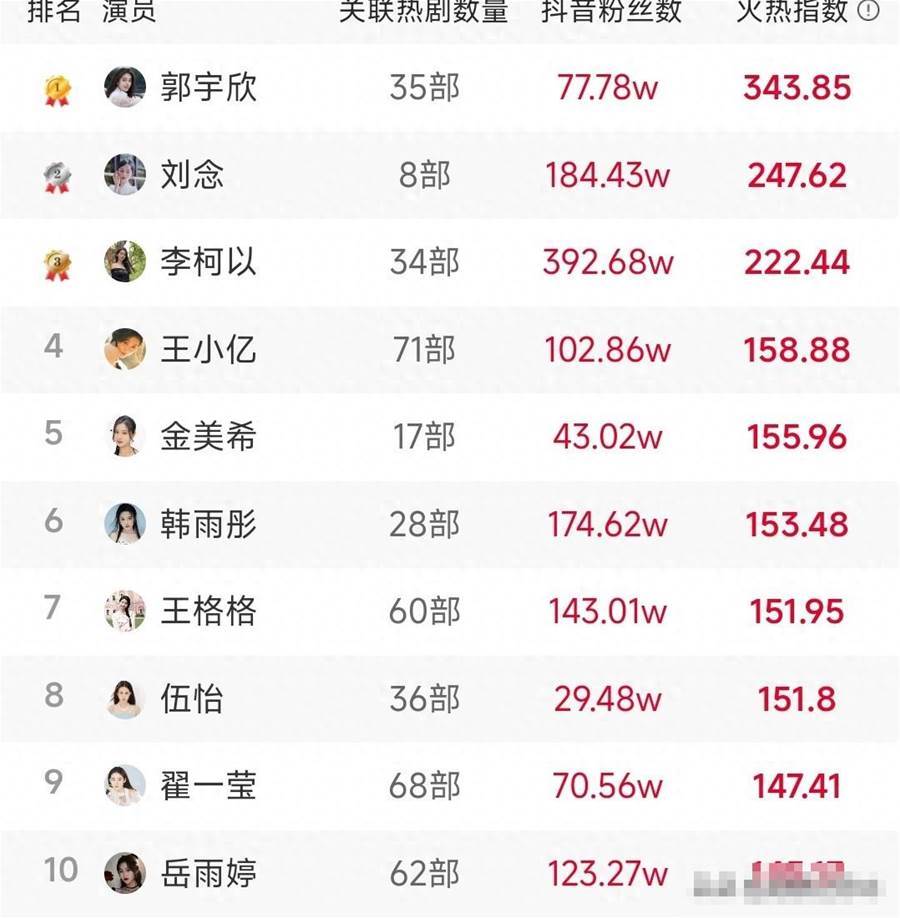 短國就是一人火一陣,前幾個月郭宇欣還不怎麼火,現在一部盛夏讓她大爆,已經是頭部短劇演員了,蟬聯半個月的短頂了,連劉念、王小億都壓了下去。
