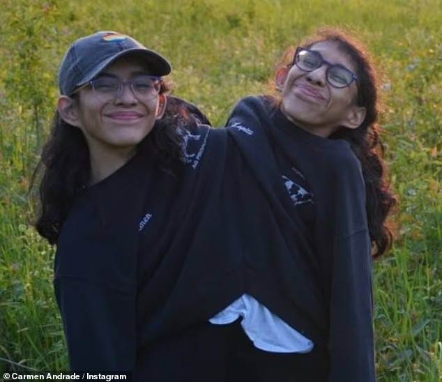 女生名叫Carmen Andrade,今年25歲,和雙胞胎姐妹Lupita Andrade共用一副身體。