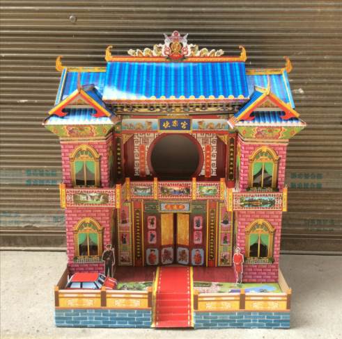 那天傍晚我抄近路回家,在荒廢的舊街拐角猛地停住了腳步——一棟從未見過的三層小樓突兀地立在暮色里,猩紅的外墻布滿灰黑色霉斑,窗戶窄長得像紙錢上的鏤空,檐角還掛著幾個褪色的紙燈籠。最詭異的是整棟樓的造型,分明就是鄉下祭祖時燒的那種紙扎別墅!