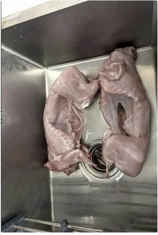一位網友說:「就是兔子啊!我小時候家裡養兔子,吃兔肉的時候特別多,所以我一眼就認出是剝了皮的兔子。」