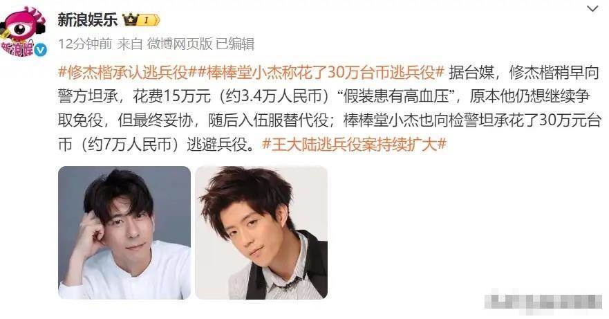 根據消息顯示,修杰楷曾花費15萬台幣,假裝患有高血壓,涉及「偽造文書」,以此來逃避兵役,這次也是受「王大陸事件」影響被牽扯出來。