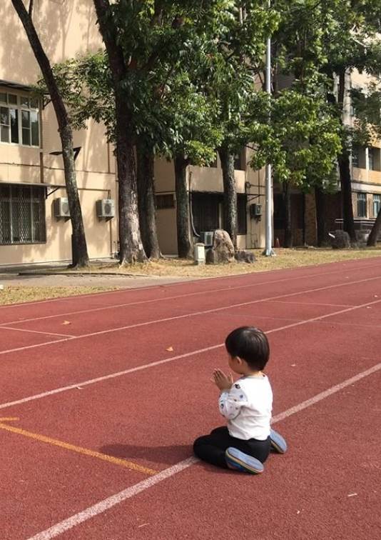 媽媽拍下天真的一幕分享:「欸…這不是神明好嗎?」照片上一個小弟弟跪坐在操場上,雙手合十對著前方拜拜,媽媽順著一看發現眼前的不是神像,而是蔣公銅像啊!兒子不僅恭敬合掌,甚至還「撿過草當香拜」。