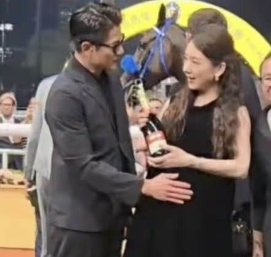 一邊郭富城夫婦在馬場秀恩愛,一邊郭富城前女友熊黛林在被記者追問。
