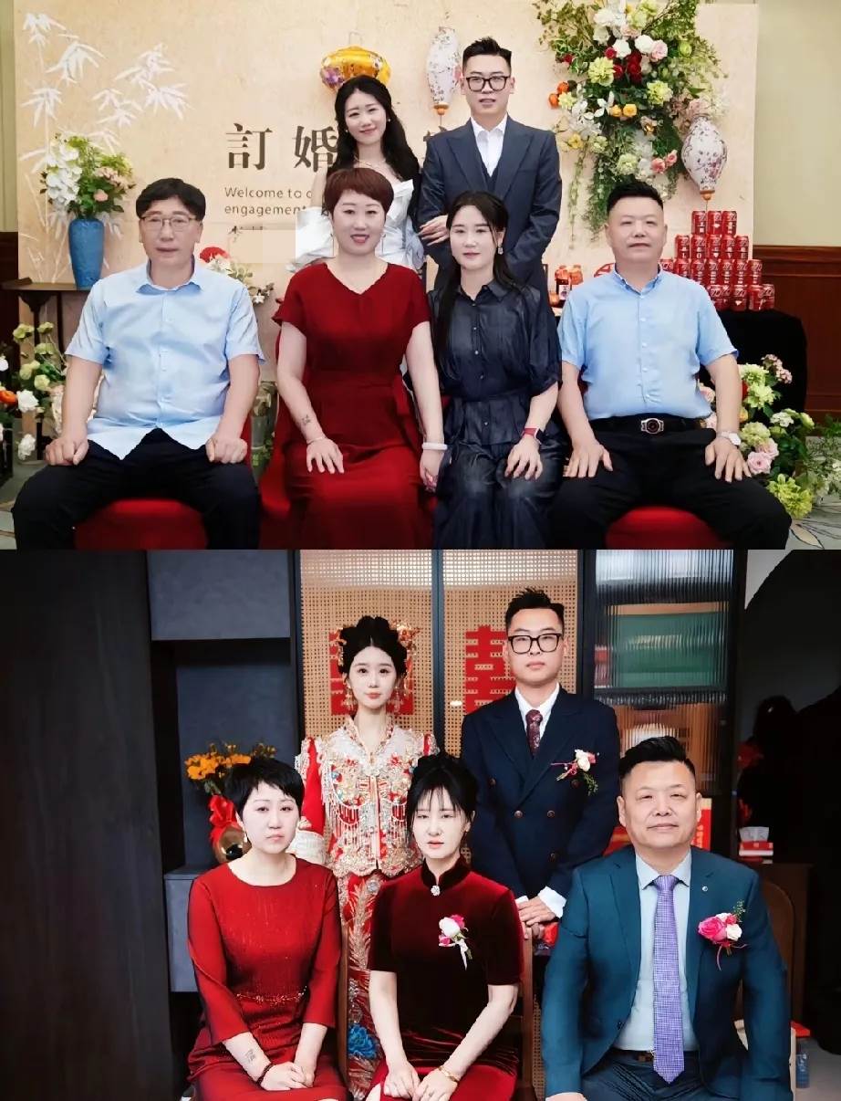 第一張是訂婚照。女兒穿著白色禮服依偎在未婚夫身旁,滿臉嬌羞。母親站在女兒身後,一身紅裙襯得她笑容格外燦爛,眼角的細紋都透著喜悅。那時她笑得那麼自然,那是發自內心的、對女兒未來的祝福。