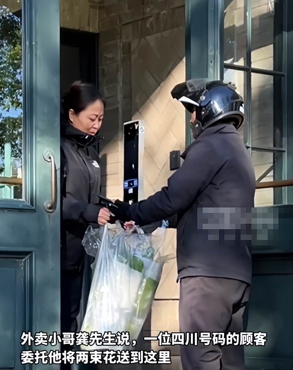 大早上就叫了一個騎手,把自己的花籃給送去。