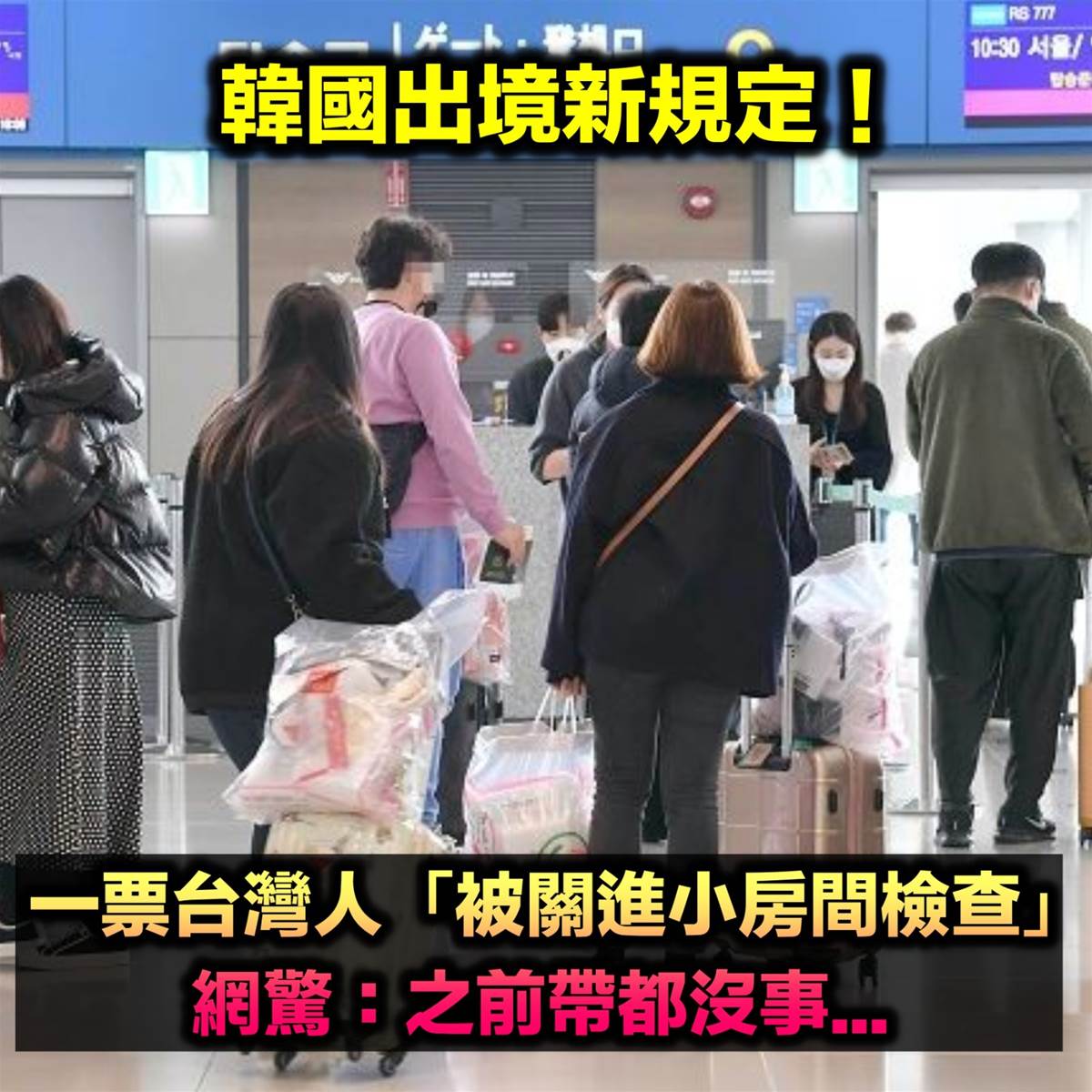 有網友在社群平臺上分享親身經歷,表示自己從釜山機場出境時,檢查程式相當嚴格,光是因為行李箱內有幾個「暖暖包」就被叫去開箱檢查。