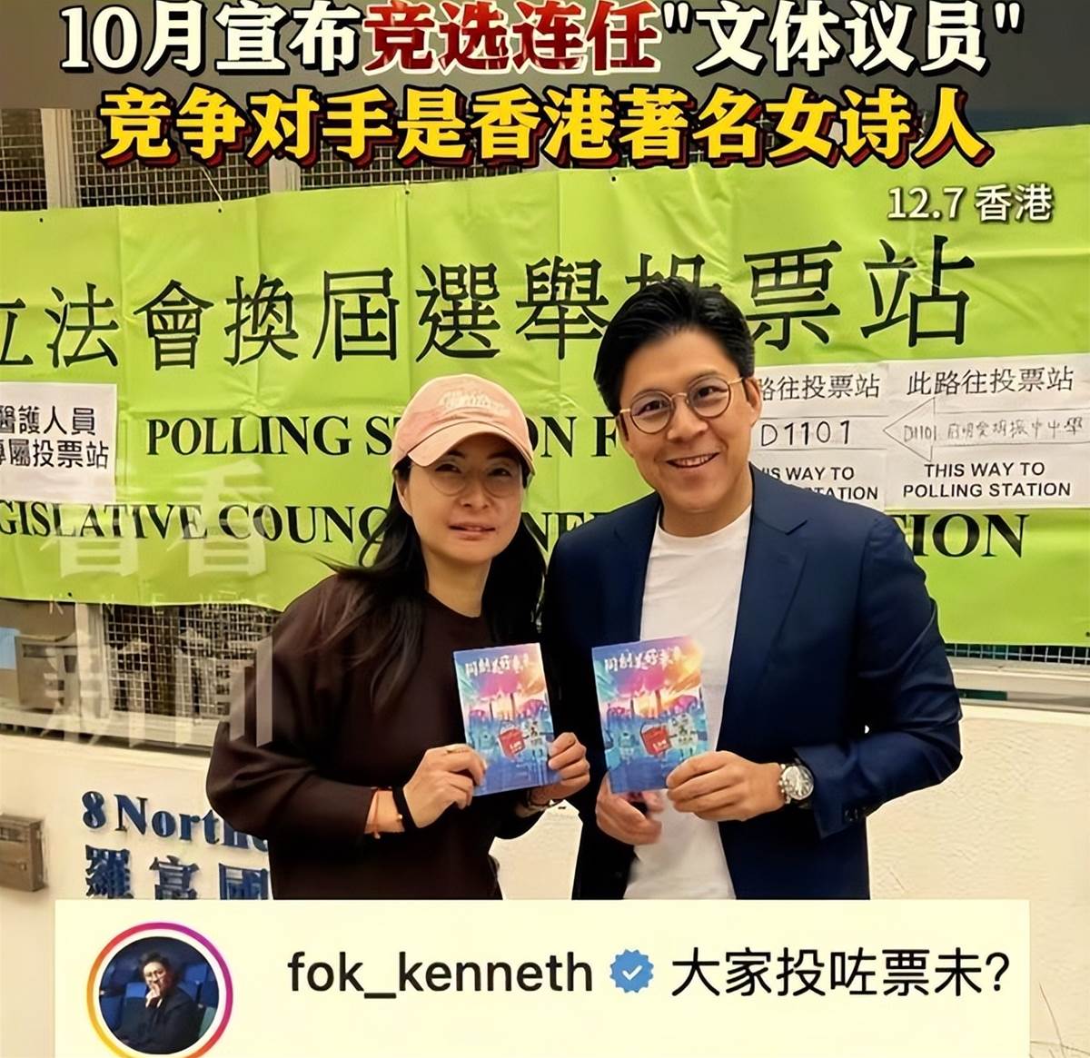 採訪中,霍啟剛面對鏡頭不卑不亢,再次表示感謝選民的信任,一定做好議員的工作。