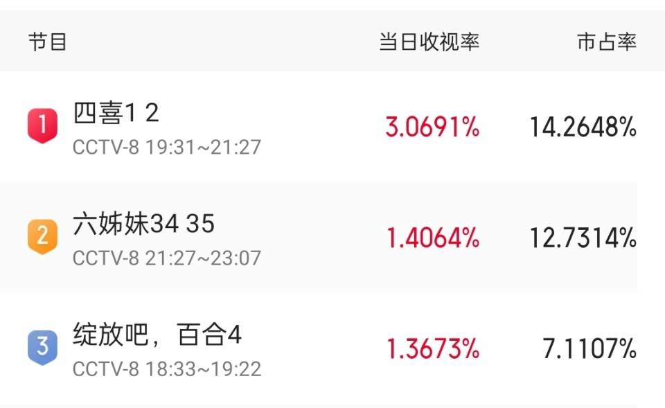 這不眼下《三人行》還在熱播,央視又一部都市情感劇《四喜》直接掀起全國追劇熱潮,僅播1天收視率破3,直接登頂全國收視第一,並一舉拿下央視最快收視破3劇集稱號,這下國產都市劇又有天花板了。