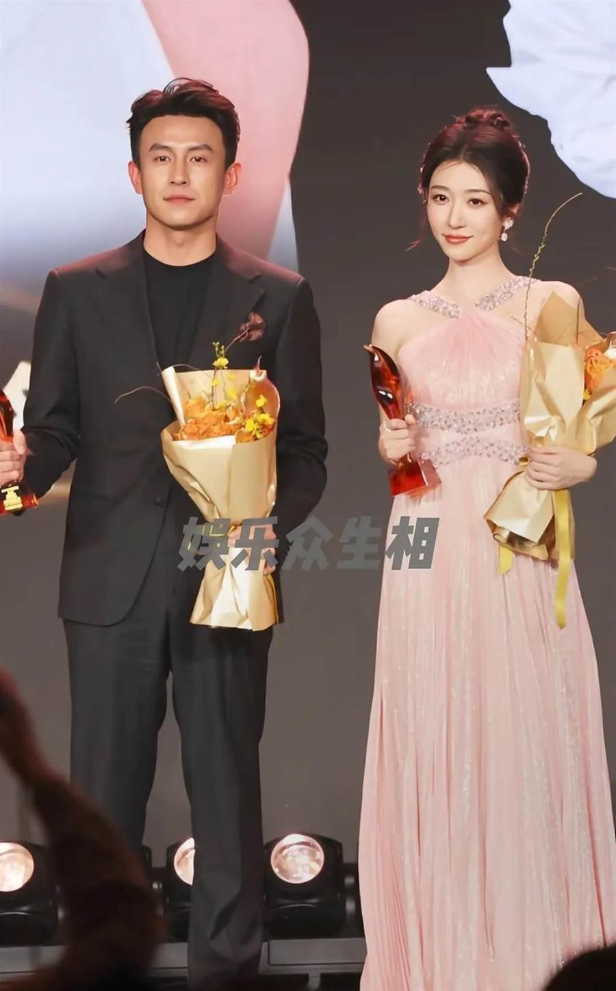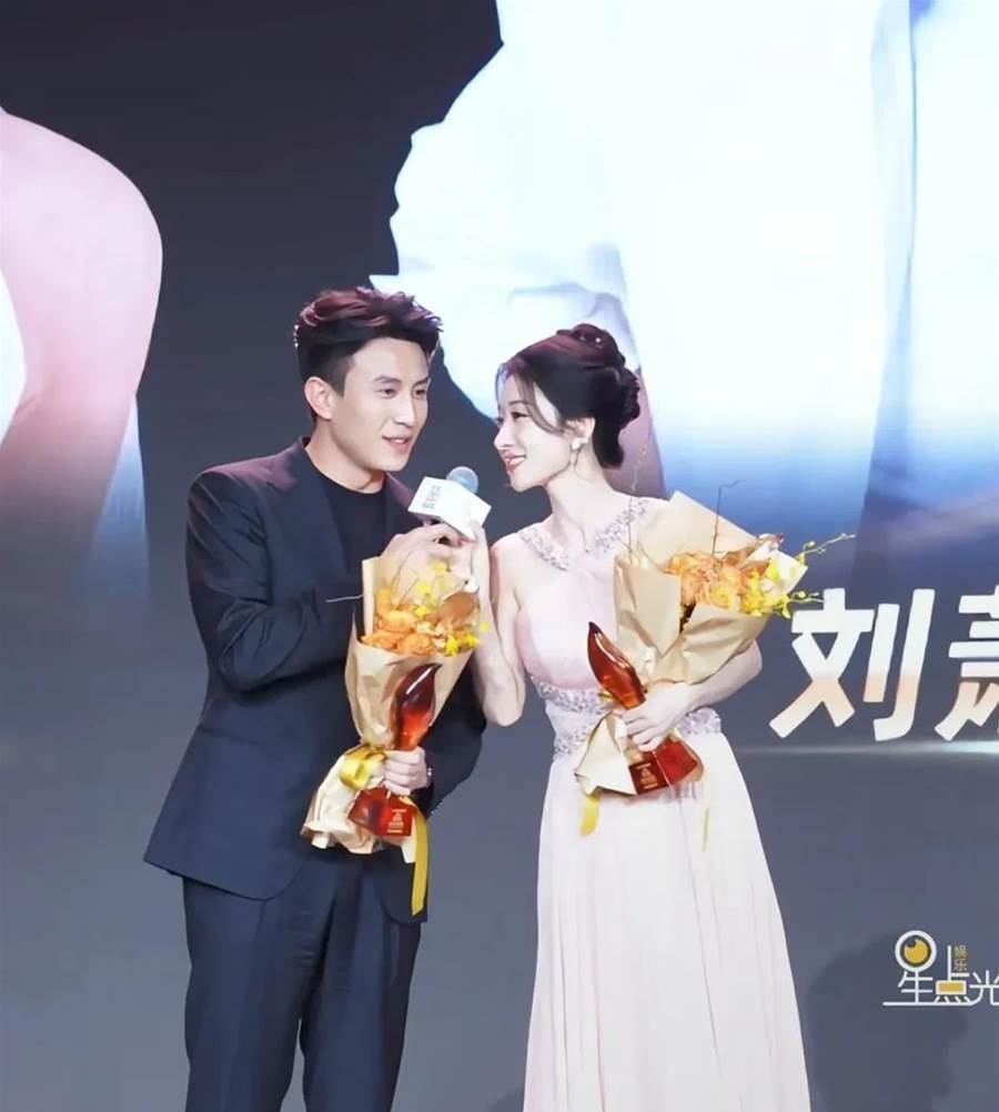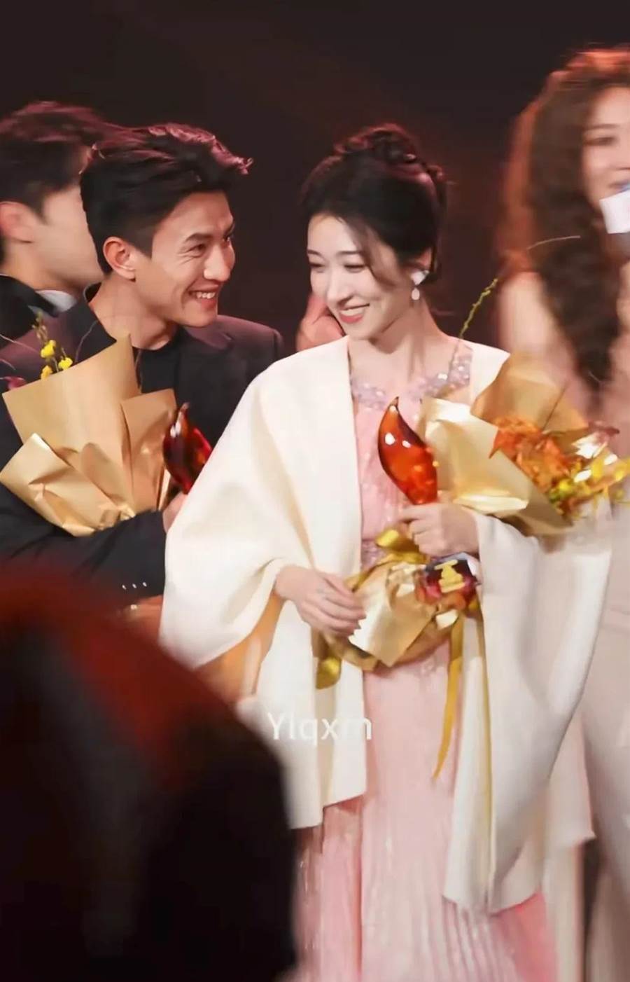 面對上臺領獎,26歲郭宇欣眼睛亮亮的完全可愛小女孩,劉蕭旭就是沉穩大叔范十足,一個同框就是年上的甜感了!