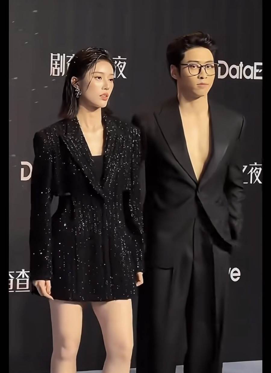 12月4日的深圳「劇查查之夜」上,他們首次以情侶身份同臺領獎,薛子祺主動幫曹天愷整理領結,動作自然又甜蜜。