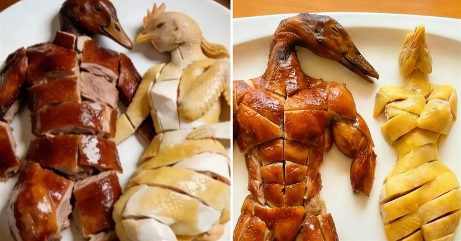 這道菜源自一位網友的分享:只見油亮酥香的烤鴨與嫩滑的白切雞,被廚師精心擺成緊緊依偎的姿態,鴨頸輕靠雞身,彷彿一對剛領證的小夫妻正在合影。搭配的文案更是畫龍點睛:「配對成功,死心塌地,人類隨便處置吧!」幽默中帶點浪漫,瞬間引爆網路熱度。