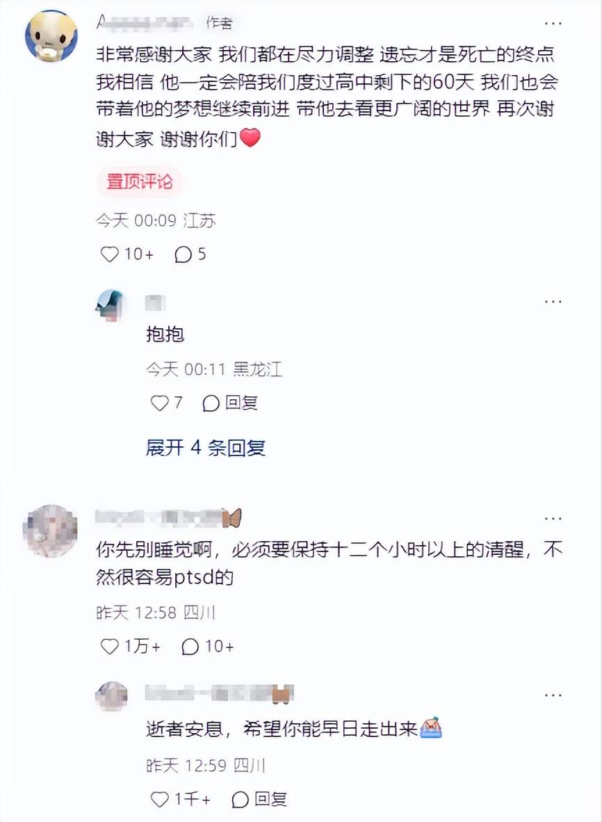 他發布消息后,過萬網友涌入評論區安慰他,讓他不要睡覺,保持清醒,希望可以早日走出來。
