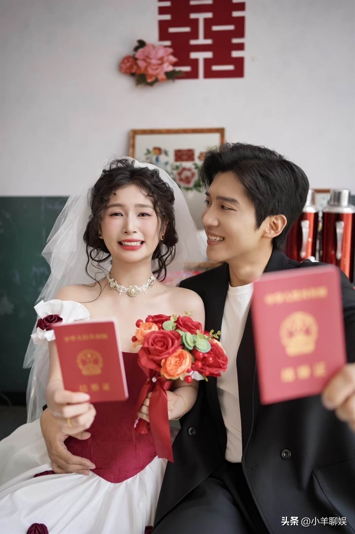 2025年6月,兩人正式領證,婚禮還復刻了定情作《為你摘星拾月》的星空婚禮,花絮爆火,甚至把真結婚證當拍戲道具,真誠又甜蜜。