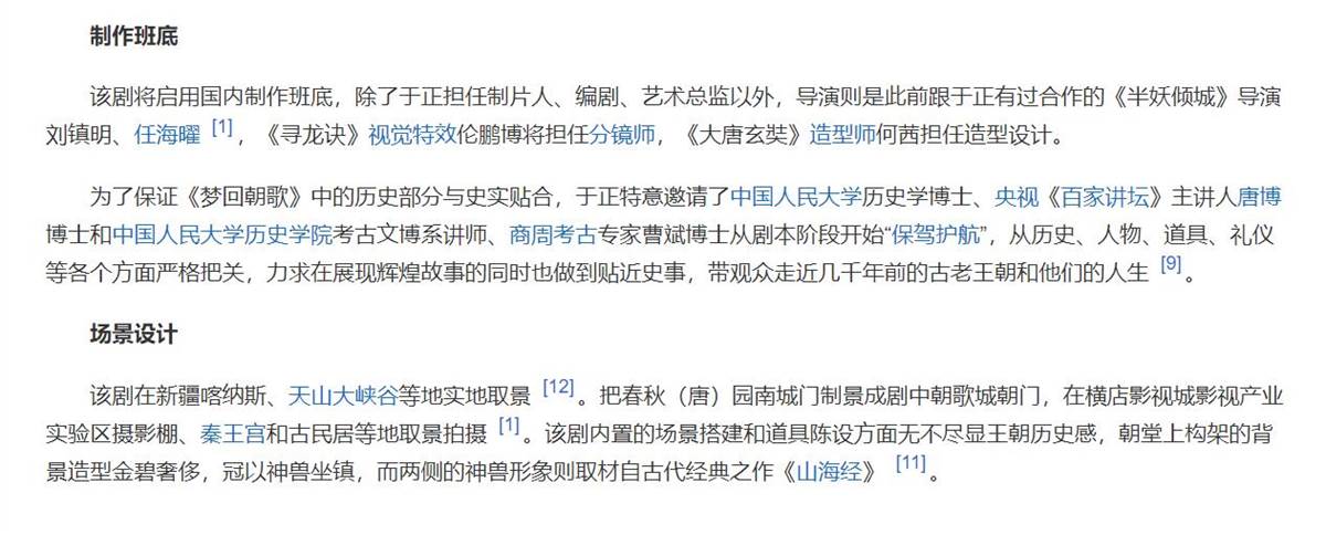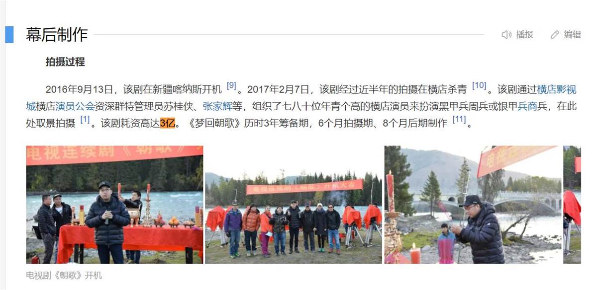 夢回朝歌在新疆喀納斯開機,去了天山大峽谷,橫店,秦王宮等等地取景。官方更是號稱這部劇投資高達3億,籌備3年,拍攝6個月,后期制作8個月。在2016年的時候,也算是一部超大投資的劇了。