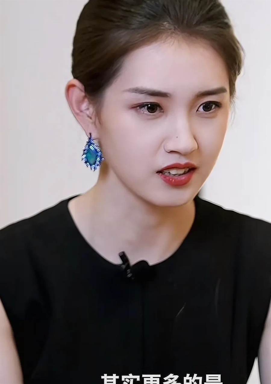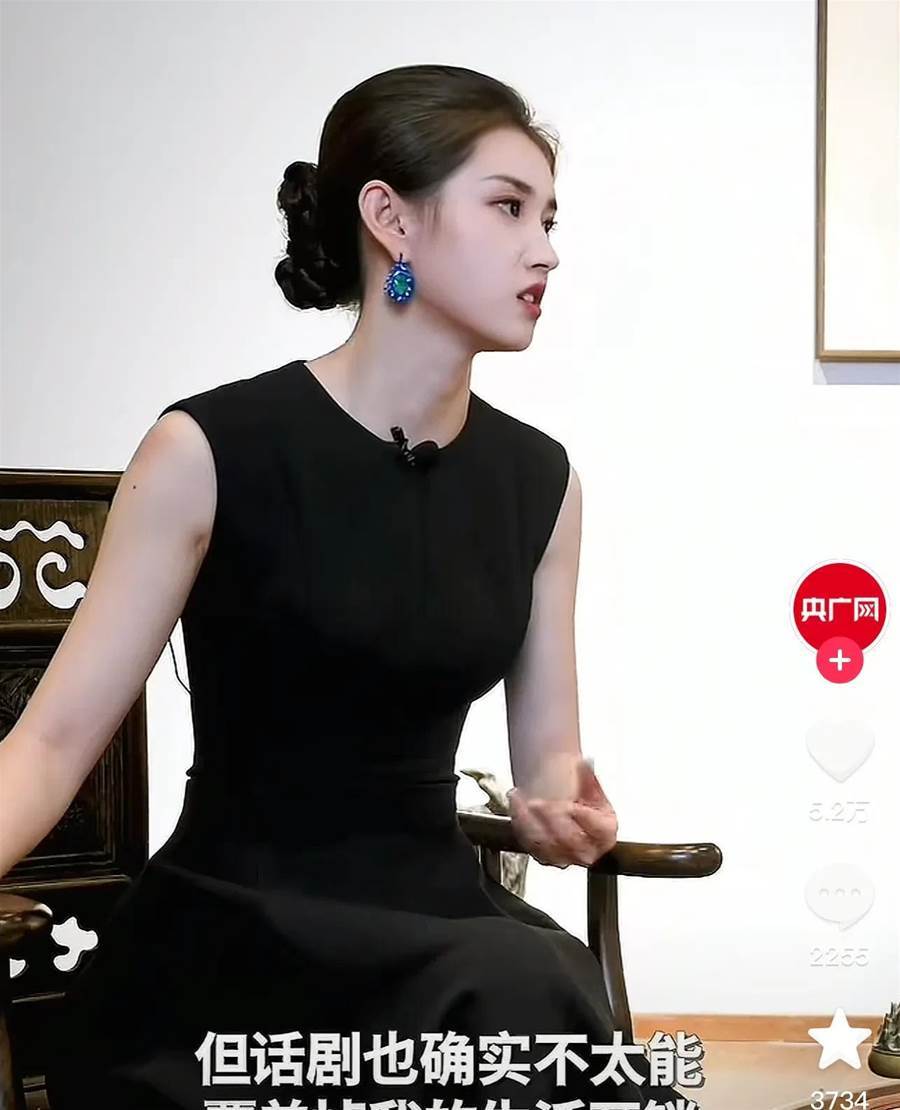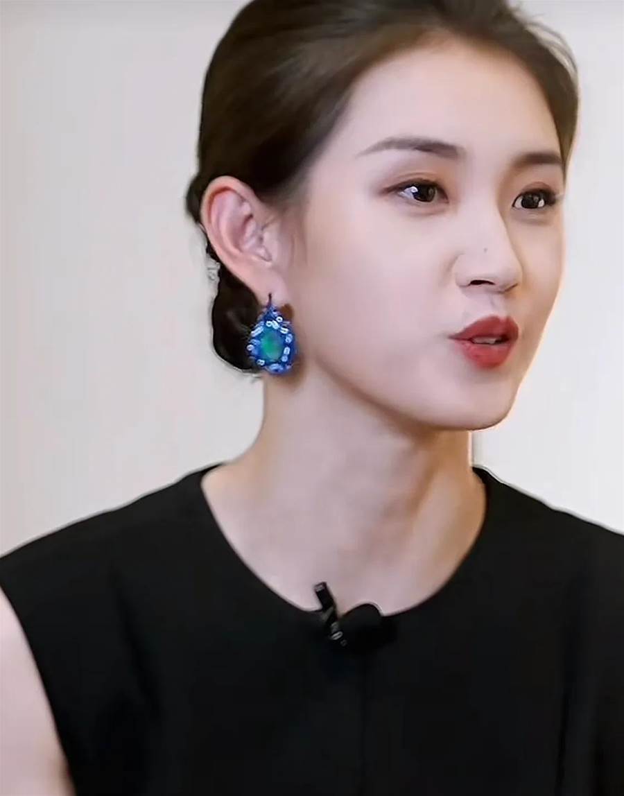 在沒有磨皮濾鏡的採訪影片裡,她的臉還是非常耐看,穿黑色禮服,扎著普通的低丸子頭,大方漂亮。