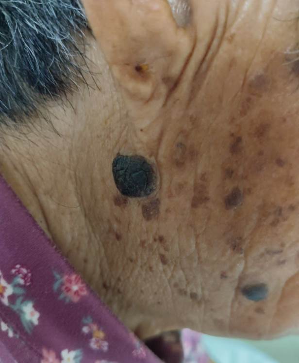 轉機出現在社群義診那天。一位路過的老醫生只看了一眼就神色凝重:「這不像普通老年斑,最好盡快做檢查。」回家後我瘋狂上網查資料,卻被網友留言嚇得手腳冰涼:「我奶奶肺癌去世前,臉上也突然長這種大黑痣」、「可能是基底細胞瘤,我父親割除後化驗是良性,但再晚就難說了」!最讓我後怕的是,有網友提醒這種莫名皮膚病變,有時是內臟腫瘤的「皮膚訊號」。